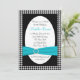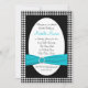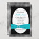 Este convite de festas de padrão houndstooth, azul, preto e branco, chic e moderno, tem uma fita FAUX azul e um broche de cristal. Todo o texto e o tipo de papel são totalmente personalizáveis. Se você precisar de produtos correspondentes, como placas RSVP, postagem, selos de envelopes, etc., envie um e-mail para niteowlstudio@gmail.com com sua solicitação.