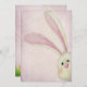 Coelhinho cor-de-rosa com orelhas grandes sobre fundo cor-de-rosa texturizado para convite à caça aos ovos de Páscoa.