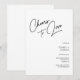 Celebre sua história de amor com este convite de casamento moderno "Saúde ao Amor". Apresentando um elegante roteiro com letra manuscrita combinado com tipografia minimalista, este design personalizável é perfeito para casais que querem um anúncio de chic, eterno e na moda. Personalize com seus nomes, data de casamento, local e detalhes de RSVP para criar um convite único que lindamente dá o tom para seu grande dia.