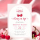 Adicione um toque divertido, mas elegante, ao seu chá de fraldas com este Convite para Chá de fraldas de Cherry Coquette. O delicado arco cor-de-rosa, aliado a cerejas a aquarelas brilhantes, cria uma estética doce e feminina, perfeita para celebrar uma menina. A escrita moderna e as cores suaves fazem deste convite uma escolha irresistível para um chá de fraldas chic.