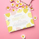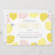 Um impressão de limão moderno em amarelos brilhantes e rosa. Esses convites podem ser personalizados com seu texto e funcionariam como excelentes para aniversários ou festas de verão.