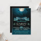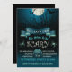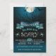 "Coma, beba e seja assustador" com aranhas e morcegos em cores azuis escuras. Personalize os campos de texto para criar seu próprio convite para o Dia das Bruxas.