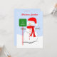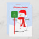 Este convite para o almoço de Natal apresenta um bonitinho bonitinho bonitinho, segurando um sinal verde de Natal que diz "Você é Convidado." O boneco de neve está vestindo um chapéu vermelho de Papai Noel e um cachecol vermelho com botões de coordenação vermelhos. Um belo céu azul está no fundo com alguns flocos de neve brancos caindo. A parte de trás do convite mostra o boneco de neve no topo e todos os seus importantes detalhes de convite para o almoço de Natal abaixo. Um convite para o almoço de Natal excelente para o feriado! Direitos autorais