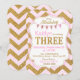 Impressão de fêmur com aspecto brilhante, cor-de-rosa claro e dourado, com cartaz de banner de aniversário sobre um design de cartão de convite de aniversário de três letras.