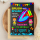 Incêndios para seus convidados com este convite de aniversário colorido com um belo slide d'água e elementos bonitos de desenho animado com tipografia vibrante sobre fundo de quadro. Basta adicionar os detalhes do seu evento neste modelo fácil de usar para torná-lo um convite de tipo único. Sacudir a placa até que ela mostre uma textura azul de água na parte traseira da placa.