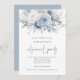 Florais Azuis Dusty Script Convite de festas de Reforma. Disponível digitalmente e impresso. Flores de aquarela em pó e azul claro. Personalize facilmente o texto de acordo com as suas necessidades.