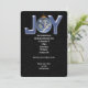 Festa de Natal convidada com texto de JOY em flocos de neve e ornamento terrestre em preto.