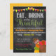 Incrível e Festivo, este Convite de festas de Ação de Graças ou de Ação de Amizade é excelente para festas de banquete festivas e divertidas! Convidar apresenta fundo na moda faux chalkboard e um peru festivo. Comece a festa de ação de graças ou de amizade... este convite vai pôr o humor de imediato!