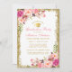Cartão de Convite à Festa de formatura Dourada Floral e Dourada Brilhante Cor-de-Água Rosa - Script Rosa - Parte Traseira da Fotografia