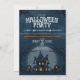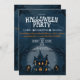 Marque a cena para uma noite de Halloween emocionante com este convite de casa assombrado. Apresentando uma lua de cheio brilhante, árvores tortuosas, lanternas-de-jack e uma mansão gótica assustadora, esta design capta o espírito negro e festivo de 31 de outubro. Perfeito para festas com música ao vivo, comidas, e dança, este convite adiciona um toque arrepiante e divertido à sua celebração do Dia das Bruxas.