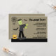 Este convite para o Festa de Halloween, 5x7, tem um tema fofo. Há uma aranha pendurada numa teia no canto, com um frankenstein caminhando com dois morcegos voando ao redor. Há um truque de abóbora ou saco de tratamento à esquerda. Você pode personalizar facilmente as informações de sua parte à direita. Copyright JD Digi Designs