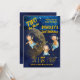 Dois, o modelo convite de festas da lua com um lindo ursinho engraçado em um capacete espacial e calças voando no espaço no céu celeste com ouro metade da lua ao fundo.