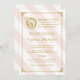 Um convite de conto de fadas como fora das páginas de um livro de histórias. Excelente para um chá de fraldas temático da princesa rosa. Este convite apresenta um aspecto brilhante dourado e listras rosa e brancas.