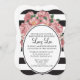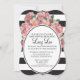 Belo Convite ao Chá - Black & White Stripes sob um clássico design oval, adornado por flores brotando. Adicione a borda do suporte para um toque especial!