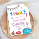Faça um salto com brilho e doces usando este adorável Convite de Aniversário de Piscina Rosa de Rosquinha Unicorn! Com um sonhador monocórnio flutuante, rosquinha coberta de borrifagem e gráficos de piscina rosa divertidos, este convite editável é perfeito para um cheio mágico de água, doces e diversão para comemorações de verão. Personalize com o nome, a idade, a data da festa, a hora, a localização e as informações de RSVP do seu filho para criar um convite único que todos adorarão. Perfeito para: 🦄 🍩 Unicórn e festas de piscinas temáticas de rosquinha 💖 aniversários de verão cor-de-rosa para garotas 💦 Diversão, celebrações quentes ao ar livre