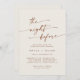 Este convite para janto de ensaio bósico de creme boêmico é perfeito para uma noite minimalista antes do ensaio de casamento. O teracotta neutro queimado laranja e creme design boêmico moderno apresenta uma caligrafia rustica simples com um estilo único, mas clássico.