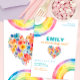 convite de aniversário arco írisconvite para arco íris modernodesign floralcartão de aniversário de watercolorconvite de aniversário de meninaconvite de festas pastelconvite para o primeiro aniversáriotema colorido arco írisconvite do coração arco írisaniversário de criança editável