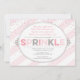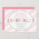 Um belo convite para uma menina chá com confete, rosa e prateada.