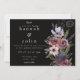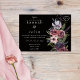 Elementos: elementos florais de aquarelas, rosas, outras flores, verde, penas, tons escuros ricos. Fontes serif contemporâneas com acentos de script Cores: preto, burgundy, rosa, pincel, mauve, tan, ecru, lavanda, roxo, ameixa, azul empoeirado, verde. Temas: moderno, escuro, elegante, moderno, floral, botânico, jardim, inverno, contemporâneo, exuberante, sofisticado. Coleção: Coleção de Casamentos de Borgonha Negra Negra em Cascata Floral Escura Elegante. Tipo de Produto: Convite Clássico - Horizontal