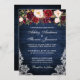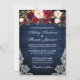 Rustic Blue Wood Lace Burgundy Watercolor Convite Para Casamento Floral