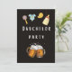A Dadchelor, cerveja e fralda, convidam com tipografia de chalkboard que é neutra em termos de gênero.