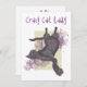 Engraçado desenho animado faz convites de aniversário. Pintura exclusiva de gatos disponível apenas em Laura Davies Art. Gato preto sobre um fundo de pintura roxo e verde-oliva. Fontes Legal prontas para personalizar.