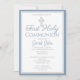 Celebre este marco especial com um belo e moderno convite da Primeira Comunhão. Este design apresenta uma simples cruz prateada contra um fundo branco com uma borda azul de poeira. Design o convite da Primeira Comunhão do garoto perfeito personalizando a cor, a fonte, a data e todos os detalhes do texto.
