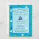 Náutica verde e azul, veleiro temido, baleias, ancora os convites para um chá de fraldas de menino.