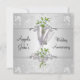 Aniversário Elegante de Casamento Convidou. Lírios de Damasco Floral de Prata, Óculos de Champanhe