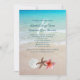 Tropical, convites de casamento de praia. Uma estrela-estrela, um dólar de areia e uma flor de plumeria rosa, decoram lindos e designer artigos de papelaria com fundo de praia. Os pais da noiva e do noivo são mencionados no topo. Terei todo o prazer em alterar a sua redação.
