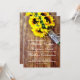 Buquê de girassol - Rustic Country Wedding Convites com um buquê de três girassóis envoltos em burlap e twine sobre fundo de madeira de celeiro. O mesmo buquê de girassol e design de madeira de celeiro está também no verso do convite. Estas são excelentes para casamentos rústicos no país. Artigos de Correspondência: convites para casamentos, convites para casamentos de países, convites para casamentos de girassol, convites para casamentos ao estilo do país, em apuros, madeira, madeira rústica, vindima, antiguidade, burlap wrap sunflower, buquê de girassol
