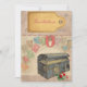 Convites de casamento com tema viagem do estilo Vintage, com um tronco e um fundo de carimbo. Facilmente personalizável para que você possa adicionar todos os seus próprios detalhes.