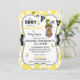 Impressão de mel com sotaque impressão de ponto-polca preto e branco e abelhas melíferas e um doce chá de fraldas de convite para bebês africanos modernos design. As cores são amarela, preta e branca.
