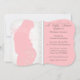 PALETA DE CORES: COLEÇÃO DE DESIGN branco, cor-de-rosa suave: criado com uma silhueta moderna de barriga de uma mãe grávida com espirais de folhas de pergaminho. Simples, gráfico e contemporâneo em design e cor. Uma borda simples divide a imagem e o texto do convite. No verso está uma cinza de carvão com uma listra microfina e uma imagem central úmida a rosa.