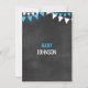 Fantástico, rústico, tema do bico, convites para bebês. Veado azul de prateleira no fundo do quadro e bandeiras de bunt penduradas. Azul / turquesa e cores brancas. É UM GAROTO! modelos de convite. Texto editável. Consiga os adesivos!