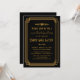 Esses convites de aniversário apresentam uma paleta de cores preta e dourada, um quadro geométrico e outros detalhes estilísticos, todos inspirados no Art Deco e nos vinte e poucos anos ruidosos. Você pode personalizar os campos de texto de exemplo de acordo com o seu gosto.