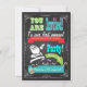 Uma festa de Natal super divertida ou boa, feita no estilo do quadro. Tipografia moderna, banners e um claus vintage santa contra fundo de quadro negro. O verso é um excelente como a frente com a antiga arte de clipe do Retro Papai Noel e informações sobre a festa.