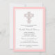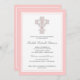 Uma cruz elegante desenhada com caracóis giratórios e rico de pulgas de padrões, faz um convite encantador para o batismo da sua menina. Cada linha pode ser personalizada para atender às suas necessidades. Os autocolantes e o correio também estão disponíveis.