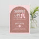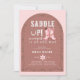 Celebrar uma pequena vaquinha a caminho com este convite de chá de fraldas de temas ocidentais, com botas aquarelas, guitarra, roda de vagão, chapéu de vaqueiro e cactos. Os tons cor-de-rosa e o encanto rústico o tornam perfeito para as mães amantes do país. Personalize o texto para corresponder aos detalhes do seu chá e emparelhe-o com itens correspondentes da nossa coleção Saddle Up Cowgirl.