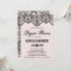 Convite personalizável de chá de lingerie de noiva com rendas de brocadas pretas em segundo plano de rosa claro. Isto é parte de uma suíte de casamento. Outras cores e itens correspondentes estão disponíveis.