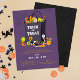 Prepare-se para uma celebração assustadora com este convite de festas de fantasia de Halloween vibrante! Apresentando um fundo roxo, um saco de refeições, doces coloridos, e pop de crânio lúdicos, este convite dá o tom para uma noite de truque ou de tratamento divertida ou para uma noite de fantasia para crianças. Perfeito para aniversários de Halloween, festas de casa assombradas, ou passeios de doces na vizinhança. Personalize facilmente todos os detalhes do evento para atender às suas necessidades.