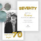 Celebre setenta anos de amor, vida e risos com este convite de 70 de aniversário de balões de ouro. Apresentando "SÉTIMO" em letras de balão de folha de ouro falsas e espaço para uma foto personalizada, esta design elegante e moderna é fácil de personalizar. Adicione o nome do convidado de honra, os detalhes da festa e RSVP para criar um convite significativo que dê o tom para a celebração. Ideal para jantas formais, encontros casuais ou reagrupamento familiar, este convite torna-se um marco para um marco verdadeiramente especial.
