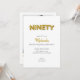 Celebre noventa anos incríveis com este elegante convite de 90 de aniversário de balões de ouro. Apresentando "NINETY" em letras de balão de folha de ouro em negrito e falso e um espaço para uma foto personalizada, este design de eterno é perfeito para honrar uma vida bem vivida. Personalize o nome, a hora da festa, o local e os detalhes de RSVP sem esforço. Quer você esteja hospedando um janto formal, um encontro casual, ou um evento familiar sincero, este convite dá o tom para uma celebração significativa e faz uma manutenção para o tesouro.