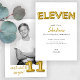 Comemore o aniversário de 11 do seu filho com este convite fotográfico ousado e moderno, com "ELEVEN" em letras de balão de folha de ouro falsas. Com espaço para mostrar uma foto pessoal e um texto totalmente editável, esta design é perfeita para marcar o início dos adolescentes anos de estilo. Atualize facilmente o nome, a data, o local e os detalhes de RSVP. Quer seu filho queira um ressaca ou uma cesta de aniversário tematizada, este convite polido funciona para qualquer vibração — e faz uma saquê divertida também!