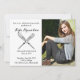 Convide convidados em estilo com este convite personalizado de festa de formatura para jogador de softball. Este convite personalizado de graduação apresenta uma silhueta preta de morcegos de softball e uma área para você incluir uma foto colorida do seu formando. No verso, há um padrão abstrato preto e branco que pode ser facilmente personalizado com uma segunda foto do seu formando. Este convite de formatura é principalmente preto e branco e tem uma fonte rico, moderna e na moda para o seu nome de formando. Este convite é simples de personalizar com seus detalhes personalizados, como a escola, o ano de aula e a data/hora/local da comemoração da graduação! Perfeito para qualquer jogador de softball, treinador de softball ou qualquer formando que goste de jogar softball.