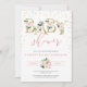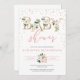 Este convite do chá de fraldas de ventre moderno continha letras brilhantes de ouro e flores cor-de-rosa e pêssego e faíscas douradas