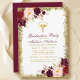 Watercolor Burgundy Cartão de Convite para Festas de formatura Médicas Floral e Dourada para Brilhantes inclui rosas cor-de-rosa, rosas burguentos, flores vermelhas e verde botânico - Borgonha