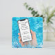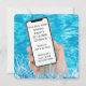 Mão segurando um telefone celular em água salgada para um convite para uma festa de piscina.