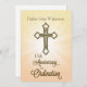 Um cartão de aniversário de ordenação por 15 que apresenta uma cruz de ouro. Celebre um jubileu com este passado estelar trazendo vida e focando na cruz.