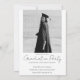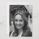 Celebre as conquistas do seu graduado com este convite de formatura e convite de festa moderno e simples. A foto que ocupa toda a área da página e a fonte dão a este convite um design elegante e limpo, tornando o graduado o ponto focal. O cartão de dois lados facilita a personalização deste convite e a adição dos detalhes da sua festa de formatura no verso. Este convite acomoda duas fotos, uma na frente e uma no verso. Perfeito para celebrações de formatura do ensino médio, faculdade ou pós-graduação.
